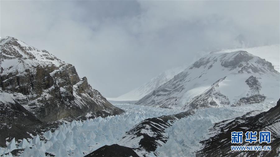 過(guò)渡營(yíng)地附近的冰塔林(5月8日攝,無(wú)人機(jī)照片)。珠峰過(guò)渡營(yíng)地海拔5800米,是連接前進(jìn)營(yíng)地和珠峰大本營(yíng)的重要一站。登山愛(ài)好者從大本營(yíng)徒步大約四個(gè)小時(shí)就能抵達(dá)過(guò)渡營(yíng)地。此段路程亂石林立,同時(shí)也能欣賞壯美的冰川。新華社記者孫非攝