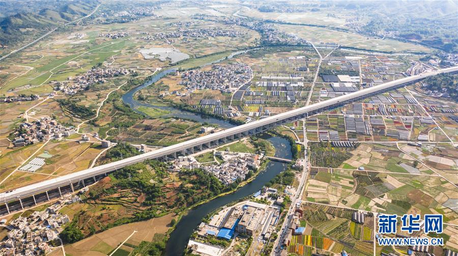 都安高速改擴建路段的惠水特大橋(無人機照片,5月9日攝)。 新華社記者 陶亮 攝