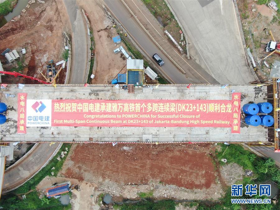 這是5月10日拍攝的印度尼西亞雅萬高鐵2號特大橋施工現(xiàn)場。(無人機(jī)拍攝)當(dāng)日,印尼雅萬高鐵首個多跨連續(xù)剛構(gòu)完成合龍,標(biāo)志著雅萬高鐵2號特大橋施工進(jìn)入攻堅建設(shè)階段。新華社記者杜宇攝