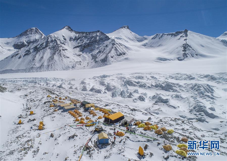 這是海拔6500米的珠峰前進(jìn)營(yíng)地(5月10日無人機(jī)照片)。新華社記者孫非攝