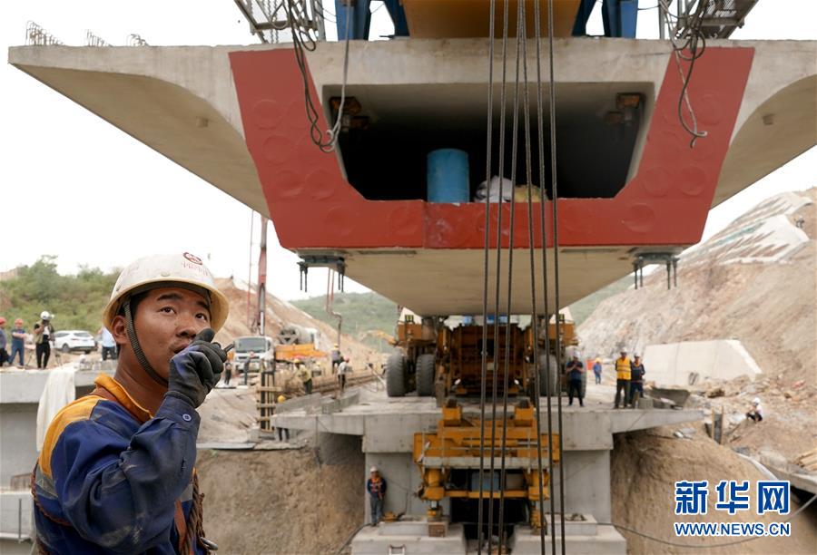 5月13日,中鐵七局的工作人員在位于河南焦作的施工現(xiàn)場(chǎng)指揮架梁作業(yè)。 當(dāng)日,隨著最后一榀長(zhǎng)24米、重552噸的箱梁架設(shè)就位,太焦高鐵全線橋梁架設(shè)完成。從山西太原到河南焦作的太焦高鐵是國(guó)家規(guī)劃建設(shè)的“八縱八橫”高速鐵路網(wǎng)的重要組成部分,計(jì)劃2020年底建成通車(chē)。 新華社記者李安攝