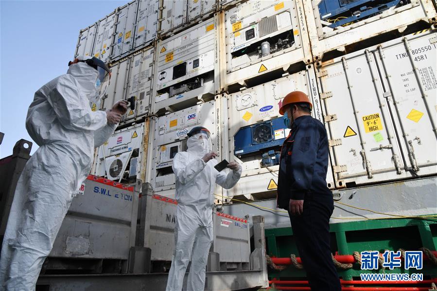 5月13日,山東威海出入境邊防檢查站民警在核對外籍船員證件。面對疫情防控要求,山東威海出入境邊防檢查站嚴(yán)密勤務(wù)組織、強(qiáng)化數(shù)據(jù)研判,加強(qiáng)口岸、碼頭的日常巡查,對國際船舶和船員強(qiáng)化監(jiān)管,全力打好疫情防輸入攻堅(jiān)戰(zhàn)。據(jù)統(tǒng)計,自2月份以來,威海邊檢站共服務(wù)出入境(港)船舶400余艘次,出入境(港)人員7000多人次,為180多個集裝箱防疫物資提供通關(guān)便利。新華社記者朱崢攝
