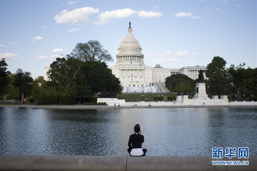 5月13日,一名女子美國華盛頓國會(huì)大廈附近休息。新華社記者劉杰攝