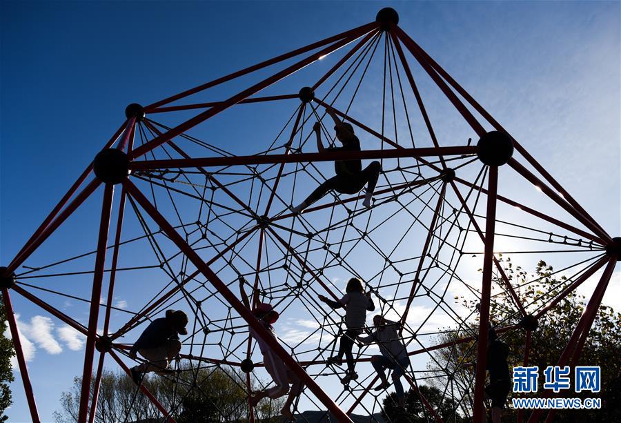 5月14日,孩子們?cè)谑锥蓟蒽`頓郊外公園的游樂場玩耍。當(dāng)天是新西蘭從新冠疫情防控響應(yīng)三級(jí)下調(diào)到二級(jí)的第一天,經(jīng)濟(jì)活動(dòng)全面重啟,公園等公共設(shè)施首次重新開放,中小學(xué)生將于5月18日全面返校復(fù)課。新華社記者郭磊攝