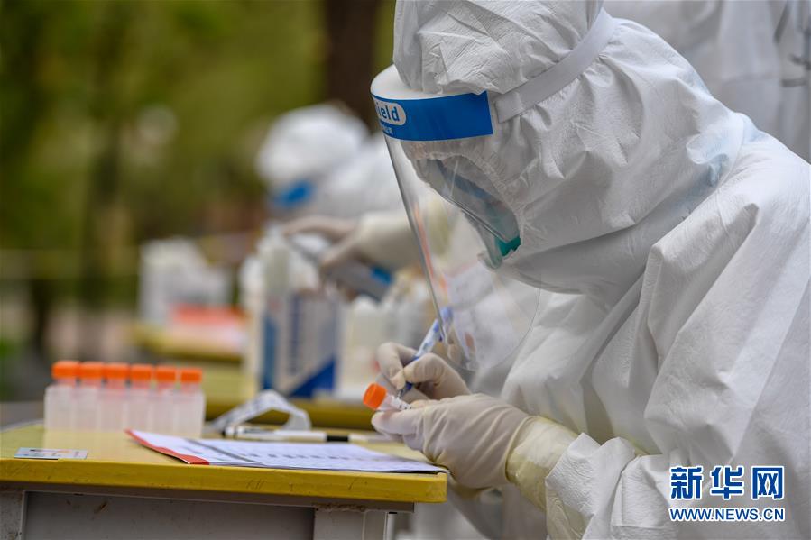 5月15日,在舒蘭市建馨園小區(qū),工作人員為居民進(jìn)行采樣、登記。當(dāng)日,從吉林市7家市直醫(yī)院抽調(diào)的300名護(hù)士經(jīng)培訓(xùn)后,全部投入到舒蘭市(隸屬于吉林市)核酸采樣工作中。為提供追溯傳染源所必需的核酸檢測相關(guān)數(shù)據(jù),舒蘭市根據(jù)確診病例的活動(dòng)軌跡,將流調(diào)和核酸檢測范圍擴(kuò)大至本地確診病例和無癥狀感染者的次密接人員及一般接觸者。新華社記者張楠攝