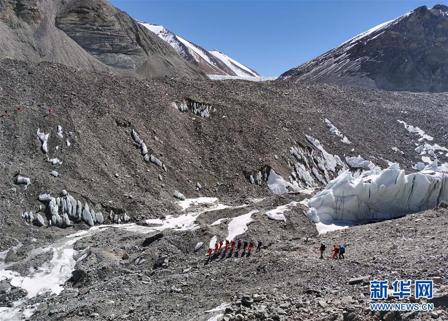 2020珠峰高程測量登山隊(duì)在前往海拔6500米的前進(jìn)營地途中(5月17日攝)。5月17日11時(shí)左右,2020珠峰高程測量登山隊(duì)從海拔5800米的過渡營地出發(fā),用時(shí)近5個(gè)小時(shí),到達(dá)海拔6500米的珠峰前進(jìn)營地。據(jù)2020珠峰高程測量登山隊(duì)隊(duì)長次落介紹,5月18日,隊(duì)伍將在前進(jìn)營地進(jìn)行休整,并將對人員進(jìn)行分工,計(jì)劃成立沖頂組、支援組、接應(yīng)組,召開沖頂前的分工會議和動(dòng)員大會。新華社特約記者拉巴攝