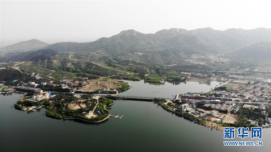 這是5月17日拍攝的雪野湖景色(無人機(jī)照片)。山東濟(jì)南風(fēng)景區(qū)——雪野湖波光粼粼,岸邊綠樹環(huán)抱,加上星星點(diǎn)點(diǎn)的帆船在湖面搖曳,景色宜人。新華社記者王凱攝