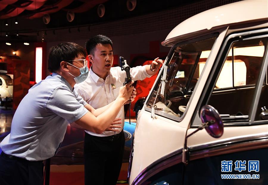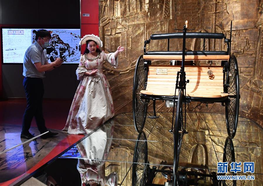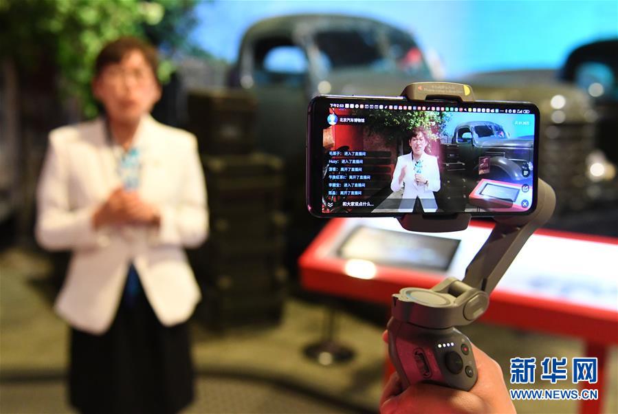 5月18日,在北京汽車博物館,工作人員(左)用講故事的方式通過網絡直播平臺介紹展品。當日是國際博物館日,北京汽車博物館舉辦“帶你穿梭汽車時光”網絡直播活動,通過網絡直播平臺對博物館中的藏品車進行展示和講解,讓網友足不出戶“云”游北京汽車博物館,了解汽車百年發(fā)展史,感受汽車文化魅力。新華社記者任超攝