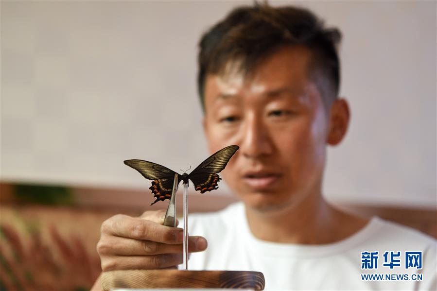 在吉木薩爾縣七彩蝶園,關(guān)富云在制作蝴蝶標(biāo)本(5月15日攝)。走進(jìn)關(guān)富云的七彩蝶園,游客不僅可以近距離接觸翩翩起舞的蝴蝶,還可以欣賞蝴蝶破繭成蝶的蛻變過(guò)程。今年34歲的關(guān)富云用9年的時(shí)間實(shí)現(xiàn)了自己的“蝴蝶夢(mèng)”,完成美麗的“蝶變”。關(guān)富云家住新疆吉木薩爾縣北地社區(qū)。2011年,他看到一檔農(nóng)業(yè)致富節(jié)目,萌生了養(yǎng)殖蝴蝶的想法。關(guān)富云說(shuō),當(dāng)時(shí)蝴蝶養(yǎng)殖還是一種新興產(chǎn)業(yè),他抱著試一試的想法,在海南學(xué)習(xí)了3個(gè)月蝴蝶養(yǎng)殖,帶回100多個(gè)蝶蛹在家試驗(yàn)養(yǎng)殖。蝴蝶的生存周期短,在當(dāng)?shù)仞B(yǎng)殖需要克服溫度、濕度、病蟲(chóng)害等問(wèn)題。關(guān)富云不斷嘗試,越挫越勇,羽化成功的蝴蝶在2014年終于突破了萬(wàn)只。蝴蝶的色彩艷麗,活體蝴蝶可用于婚慶、開(kāi)業(yè)慶典等活動(dòng)中放飛,可以取得很好的收益。但它的生命短暫,如何才能最大化蝴蝶的效益,留住它的美呢?關(guān)富云動(dòng)起了心思,開(kāi)始嘗試制作標(biāo)本和蝶翅畫(huà)?!昂宛B(yǎng)殖不同,做蝶翅畫(huà)是個(gè)創(chuàng)作的過(guò)程,從選擇標(biāo)本到粘貼,每一步都要突出美感?!标P(guān)富云介紹,一幅色彩明艷、栩栩如生的蝶翅畫(huà)耗時(shí)多日才能完成。如今,關(guān)富云的活體蝴蝶和蝶翅畫(huà)通過(guò)線(xiàn)上線(xiàn)下銷(xiāo)售,產(chǎn)品還銷(xiāo)往北京、廈門(mén)等地。關(guān)富云的蝴蝶產(chǎn)品得到市場(chǎng)的認(rèn)可,政府也對(duì)他給予大力支持。2019年,吉木薩爾縣在泉子街鎮(zhèn)建起蝴蝶觀(guān)賞園,吸引了不少游客到此參觀(guān)游玩。對(duì)于未來(lái)的發(fā)展,關(guān)富云信心滿(mǎn)滿(mǎn),“我希望把蝴蝶產(chǎn)業(yè)發(fā)展到天山南北,讓人們?cè)诤涞亩疽材苡^(guān)賞到蝴蝶,并且讓更多人參與其中,致富脫貧”。新華社記者丁磊攝