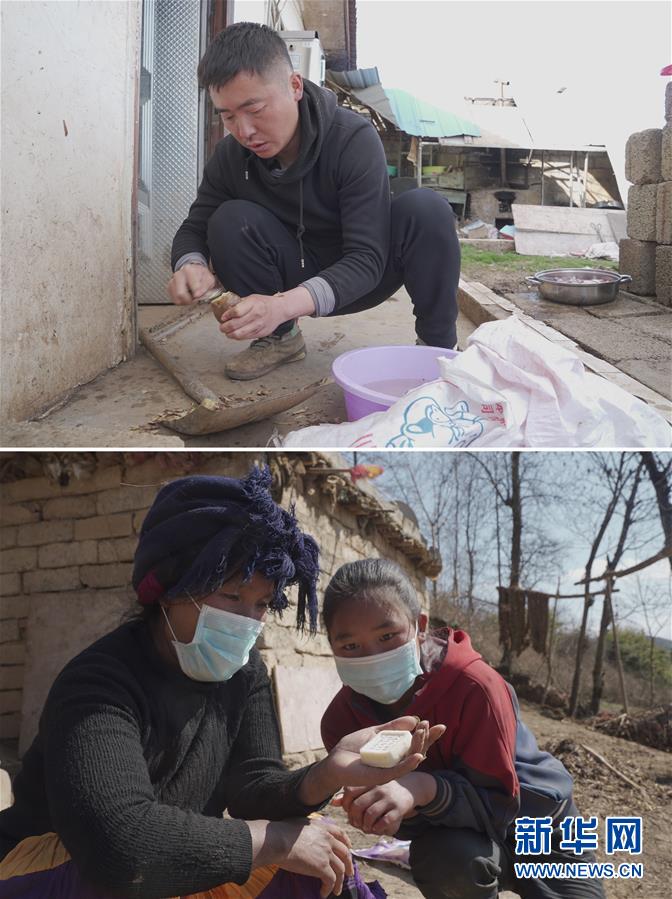 拼版照片上圖:在四川省涼山彝族自治州美姑縣瓦古鄉(xiāng),彭?xiàng)钤谙魍炼蛊?,?zhǔn)備制作土豆手工皂(3月10日,新華社記者吳光于攝);下圖:在瓦古鄉(xiāng),15歲的沙馬也曲(右)和她的媽媽拿到了彭?xiàng)钪谱鞯耐炼故止ぴ恚?月10日,新華社記者薛晨攝)。四川省涼山彝族自治州美姑縣瓦古鄉(xiāng)扶貧干部彭?xiàng)钏诘墓庞X村距鄉(xiāng)政府20公里,是美姑縣80個(gè)尚未脫貧村之一。他深知養(yǎng)成好的生活習(xí)慣,對(duì)當(dāng)?shù)孛撠氈陵P(guān)重要,所以他不僅督促老百姓疊被子、整理房間,幫當(dāng)?shù)氐暮⒆觽兿搭^、洗澡,還在疫情期間自制土豆手工皂分發(fā)給村民。彭?xiàng)钫f,疫情后準(zhǔn)備發(fā)動(dòng)留守婦女生產(chǎn)手工皂,計(jì)劃在1年內(nèi)建成一個(gè)吸納瓦古鄉(xiāng)4個(gè)村村民的手工皂合作社。黨的十八大以來,我們堅(jiān)持以人民為中心的發(fā)展思想,明確了到2020年我國現(xiàn)行標(biāo)準(zhǔn)下農(nóng)村貧困人口實(shí)現(xiàn)脫貧、貧困縣全部摘帽、解決區(qū)域性整體貧困的目標(biāo)任務(wù)。目前看,脫貧進(jìn)度符合預(yù)期,成就舉世矚目。這些成績(jī)的取得,凝聚了全黨全國各族人民智慧和心血,是廣大干部群眾扎扎實(shí)實(shí)干出來的。脫貧摘帽不是終點(diǎn),而是新生活、新奮斗的起點(diǎn)。新華社發(fā)