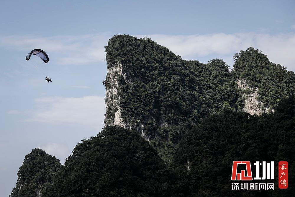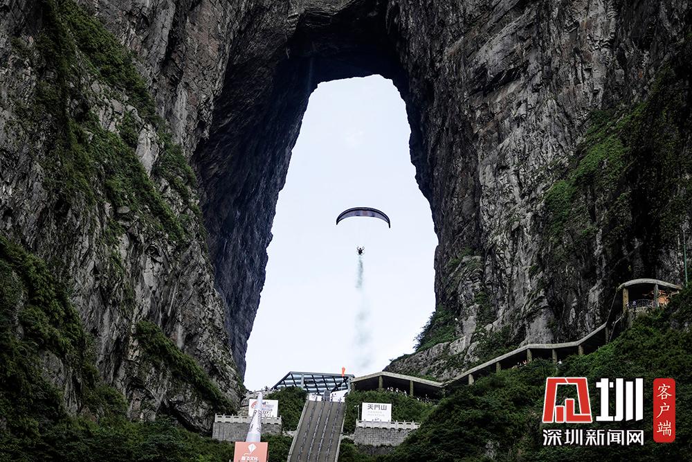 2019年6月下旬,來自Parabatix的天空賽手,六個(gè)國家的七名世界頂尖的動力傘飛行員,在張家界天門山順利完成了花式技巧賽。