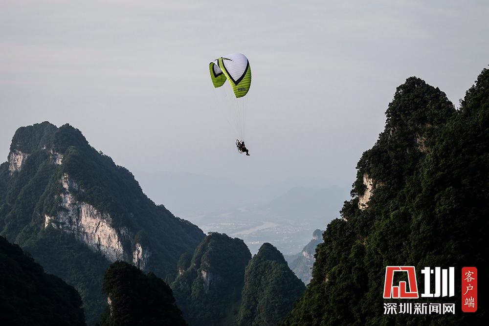 2019年6月下旬,來自Parabatix的天空賽手,六個(gè)國(guó)家的七名世界頂尖的動(dòng)力傘飛行員,在張家界天門山順利完成了花式技巧賽。