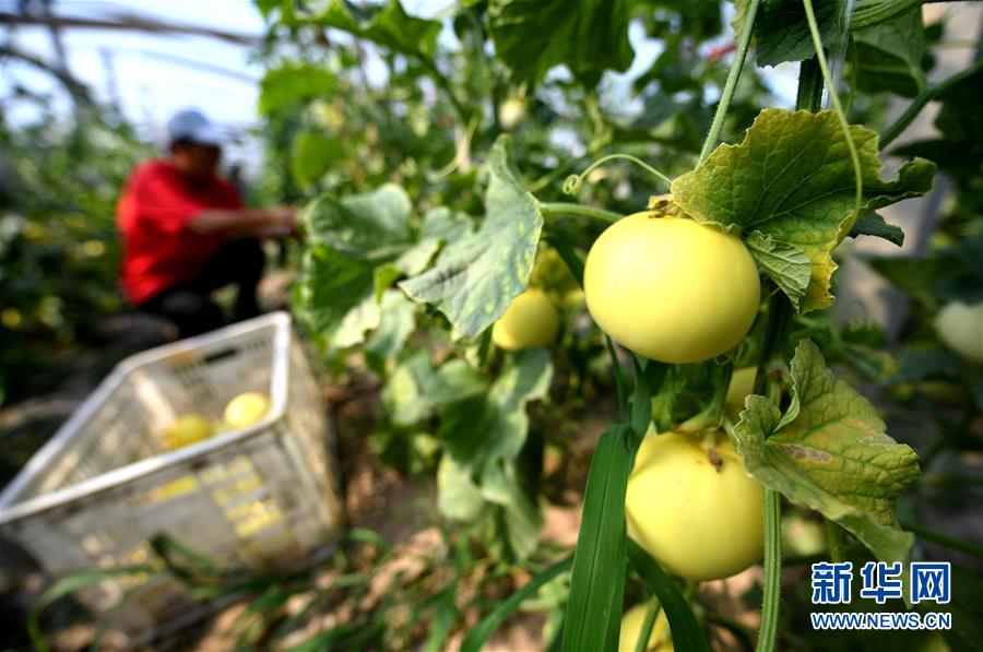 5月20日,新河縣尋寨鎮(zhèn)桃園村村民在采摘甜瓜。近年來(lái),河北省新河縣尋寨鎮(zhèn)在推進(jìn)農(nóng)業(yè)供給側(cè)結(jié)構(gòu)性改革中,把甜瓜種植作為扶貧產(chǎn)業(yè)項(xiàng)目。村集體把部分閑置的土地流轉(zhuǎn)給本村有就業(yè)能力的貧困戶,并引導(dǎo)他們規(guī)?;N植甜瓜,帶動(dòng)群眾脫貧增收。新華社記者王曉攝