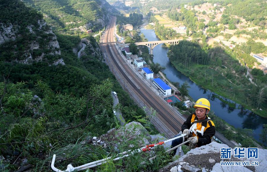 在太行山深處的中國鐵路鄭州局集團有限公司月山工務(wù)段,有一群被稱為捅山工的人。每年汛期來臨前,他們要對山體進行檢查、清理,在懸崖峭壁間“行走”,揮動著手中的鋼釬,排除威脅鐵路行車安全的危石。