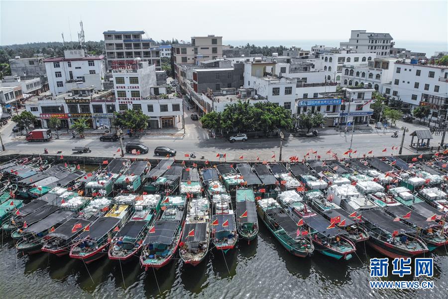 這是5月21日拍攝的停靠在海南瓊海市潭門鎮(zhèn)的漁船(無人機照片)。5月1日12時起,我國渤海、黃海、東海和北緯12度以北的南海海域進入海洋伏季休漁期。海南瓊海市潭門鎮(zhèn)的漁民利用休漁時間對船體、機械設備、網具等進行維修、保養(yǎng),保證休漁結束后以最好狀態(tài)出海捕撈。新華社記者張麗蕓攝