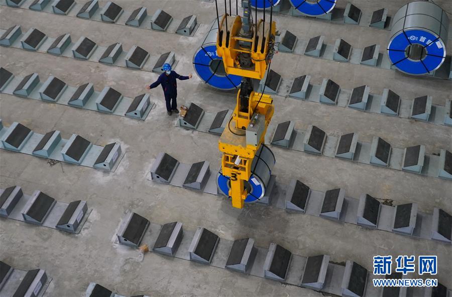 5月22日,工人在遷安市首鋼遷鋼高端汽車板生產(chǎn)車間吊運成品鋼卷。近日,首鋼股份公司遷安鋼鐵公司高端汽車板生產(chǎn)線項目在河北省遷安市投產(chǎn)。該項目具有技術(shù)水平領(lǐng)先、操作智能、節(jié)能環(huán)保等優(yōu)勢,酸洗板材年產(chǎn)量達100萬噸,產(chǎn)品主要應(yīng)用于高端汽車零部件生產(chǎn)及空調(diào)壓縮機用鋼和高強系列用鋼、精沖用鋼等多個領(lǐng)域。新華社記者 楊世堯 攝