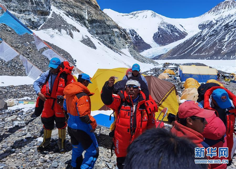 5月24日,2020珠峰高程測量登山隊(duì)部分人員從海拔6500米的前進(jìn)營地出發(fā)。新華社特約記者拉巴攝