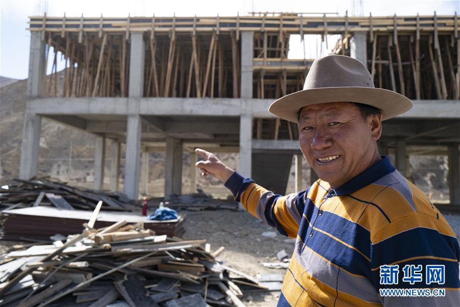 “牛頭旅館”老板多吉在新蓋的旅館監(jiān)工(5月17日攝)。新華社記者普布扎西攝