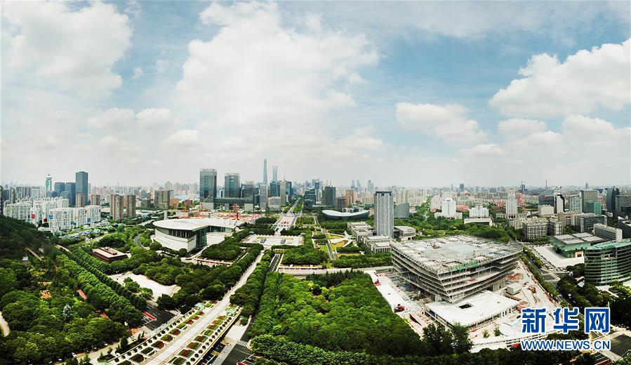 從空中俯瞰建設中的上海圖書館東館(右)及其所在區(qū)域(無人機照片,5月22日攝)。 新華社記者 方喆 攝