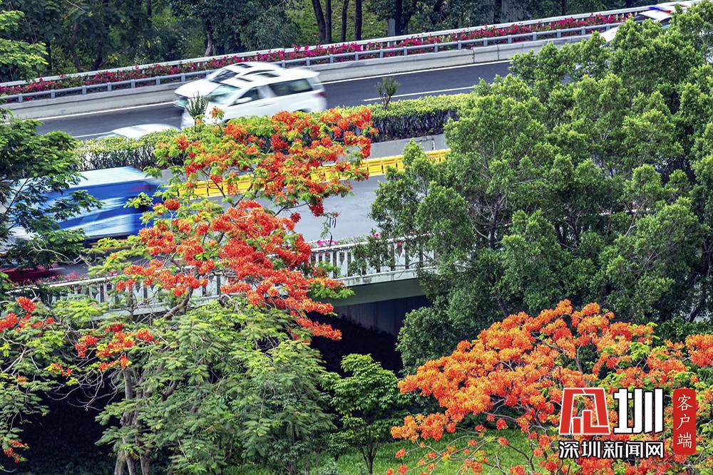 近日,深圳的鳳凰花進入花期。TCL科技園內(nèi),隨處可見盛開的鳳凰花。徐捷攝