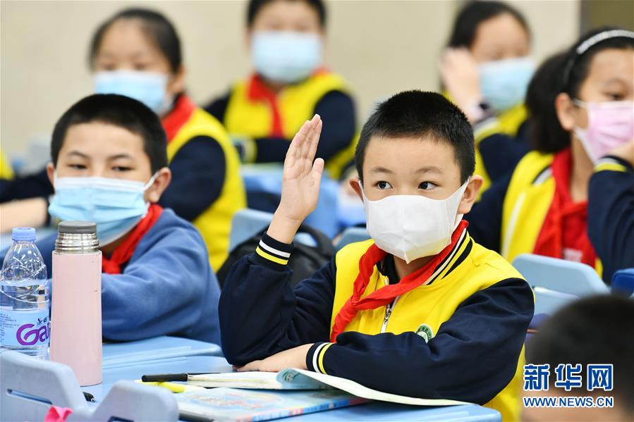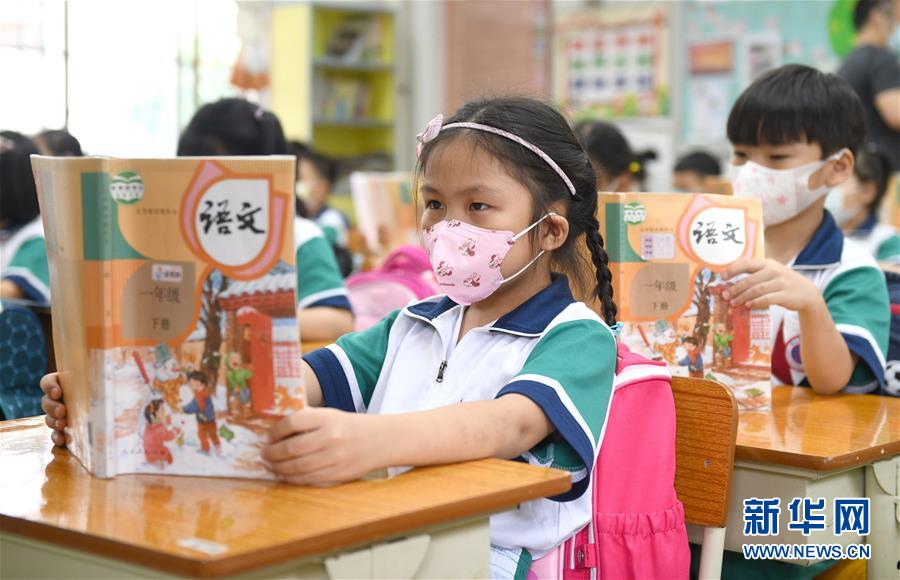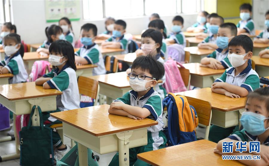 5月25日,廣州市荔灣區(qū)蔣光鼐紀(jì)念小學(xué)的學(xué)生在上課。當(dāng)日,廣州市各小學(xué)一至三年級學(xué)生正式開學(xué)復(fù)課。至此,廣州市中小學(xué)各年級已全部開學(xué)復(fù)課。新華社記者盧漢欣攝