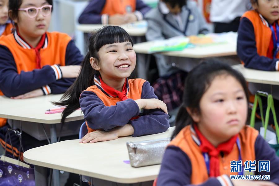 5月25日,貴陽市中天北京小學(xué)未來方舟校區(qū)一名學(xué)生在開學(xué)第一課上舉手發(fā)言。新華社記者歐東衢攝