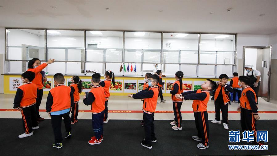 5月25日,廣州市荔灣區(qū)蔣光鼐紀(jì)念小學(xué)的老師在教學(xué)生防疫知識。當(dāng)日,廣州市各小學(xué)一至三年級學(xué)生正式開學(xué)復(fù)課。至此,廣州市中小學(xué)各年級已全部開學(xué)復(fù)課。新華社記者盧漢欣攝