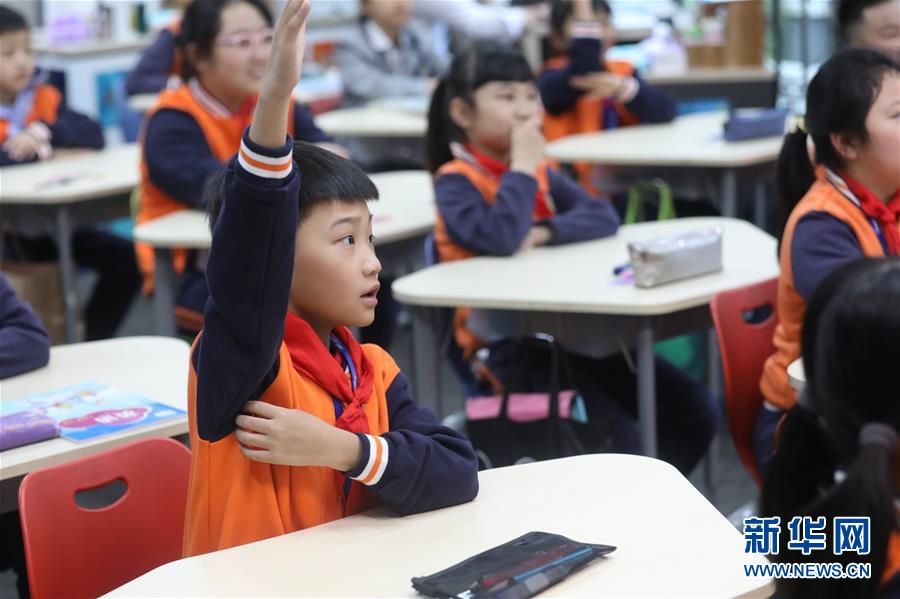 5月25日,貴陽市南明區(qū)苗苗實(shí)驗(yàn)學(xué)校的學(xué)生在課堂上舉手回答問題。新華社記者楊文斌攝