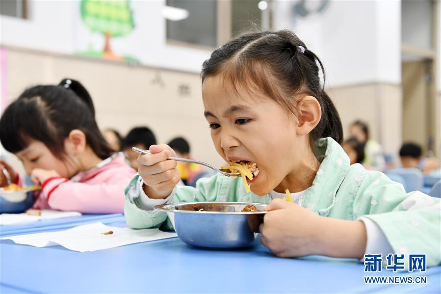 5月25日,貴陽市南明區(qū)苗苗實(shí)驗(yàn)學(xué)校的學(xué)生吃午餐。新華社記者楊文斌攝