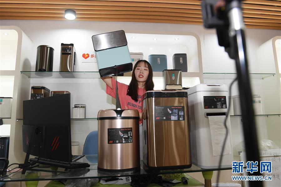 5月25日,在浙江省臺(tái)州市黃巖區(qū),一家塑料制品生產(chǎn)企業(yè)的工作人員在直播銷(xiāo)售智能垃圾桶。近年來(lái),浙江省臺(tái)州市黃巖區(qū)的家居塑料制品生產(chǎn)企業(yè)加強(qiáng)與國(guó)內(nèi)電商平臺(tái)的對(duì)接,大力開(kāi)拓線上市場(chǎng),根據(jù)線上市場(chǎng)反饋,提升產(chǎn)品研發(fā)針對(duì)性,創(chuàng)新產(chǎn)品類(lèi)型,為企業(yè)轉(zhuǎn)型升級(jí)注入活力。新華社記者翁忻旸攝