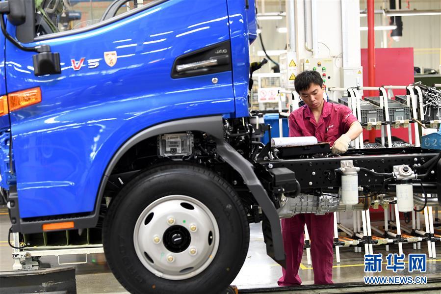 5月26日,工人在江淮汽車新港基地輕卡生產(chǎn)區(qū)內(nèi)忙碌。新華社記者劉軍喜攝