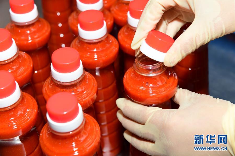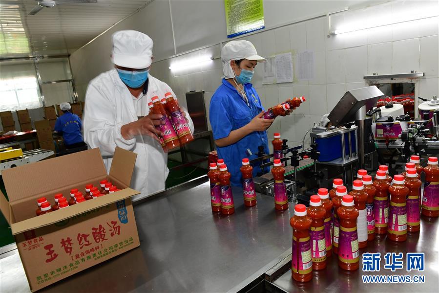5月26日,工人在貴州省黔東南苗族侗族自治州麻江縣明洋食品公司生產(chǎn)車間灌裝古法酸湯。新華社記者楊楹攝