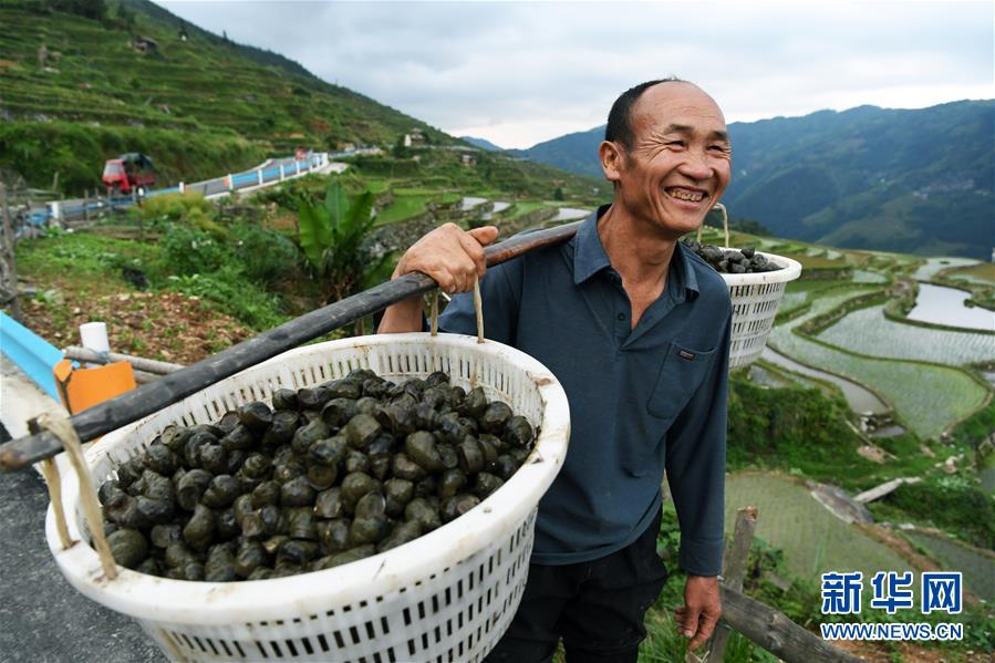 在田螺養(yǎng)殖過程中,采取“公司+合作社+農(nóng)戶”的模式,政府統(tǒng)一向龍頭公司采購種螺交給合作社,合作社根據(jù)貧困戶水田規(guī)模和意愿發(fā)放種螺,同時公司技術(shù)人員入村開展養(yǎng)殖技術(shù)培訓,田螺收獲時再由合作社對接種螺公司統(tǒng)一上門按保底價回收,解除了貧困戶養(yǎng)殖和銷售的后顧之憂,進一步拓寬山區(qū)群眾脫貧增收渠道。新華社記者楊文斌攝