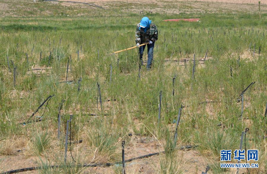 5月28日,工人在巴丹吉林鎮(zhèn)生態(tài)修復(fù)項目南部河道附近進行補植作業(yè)。2017年以來,內(nèi)蒙古阿拉善右旗在巴丹吉林鎮(zhèn)開展生態(tài)修復(fù)項目,種植適合在當(dāng)?shù)厣L的馬蓮、紅柳等植物,修復(fù)生態(tài)的同時也起到美化作用。巴丹吉林鎮(zhèn)是巴丹吉林沙漠旅游景區(qū)的游客集散地,這里常年干旱少雨,水資源匱乏。新華社記者徐欽攝