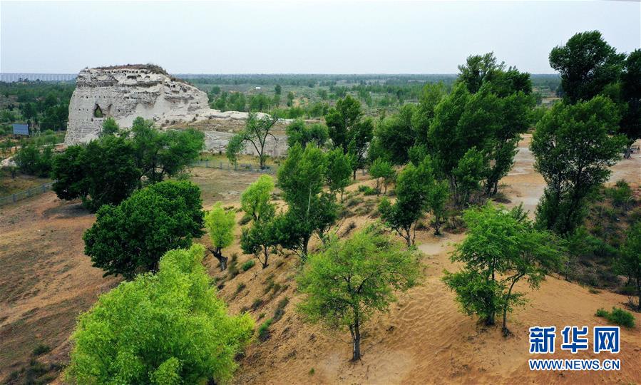 統(tǒng)萬(wàn)城北接浩瀚的毛烏素沙漠,千余年來,隨著惡劣生態(tài)環(huán)境的影響,曾經(jīng)的城池遺存遭到風(fēng)雨流沙侵蝕,一度掩埋于沙漠之下。如今,隨著當(dāng)?shù)貛状舜罅χ紊常鷳B(tài)環(huán)境得以明顯改善,統(tǒng)萬(wàn)城遺址也隨之變成綠意盎然的“大漠名勝”。