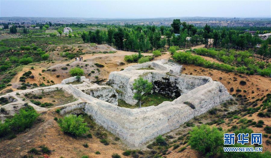 統(tǒng)萬(wàn)城西門及甕城遺址(5月30日攝,無(wú)人機(jī)照片)。新華社記者劉瀟攝