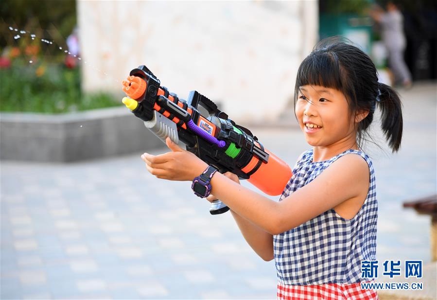 5月31日,在北京市海淀區(qū)中關(guān)村街道新科祥園社區(qū)廣場(chǎng),小朋友們?cè)谕嫠!P氯A社記者任超攝