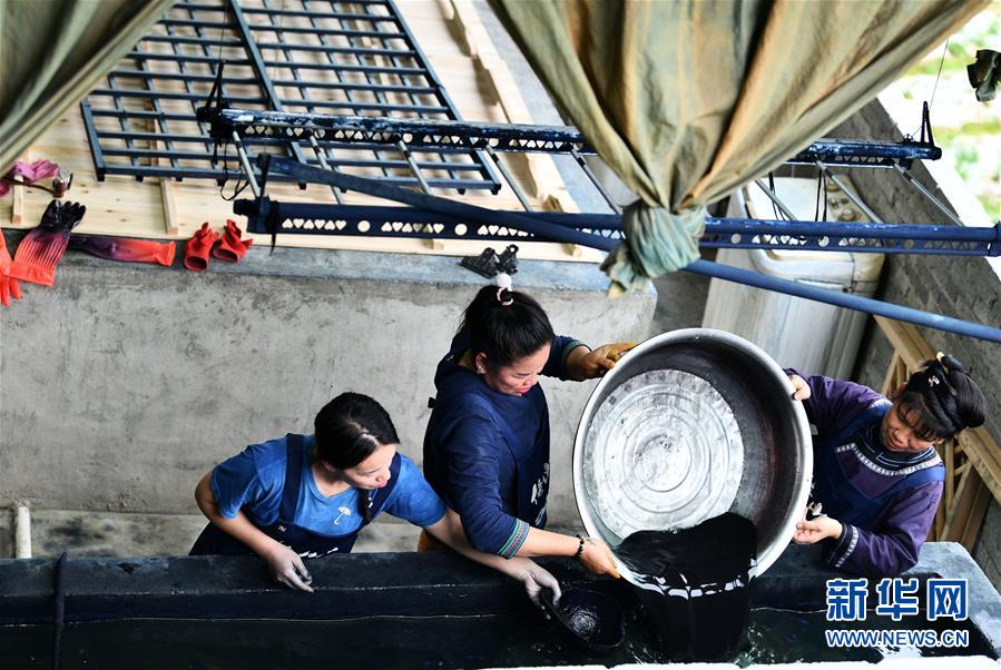 2018年,楊成蘭在村里成立傳統(tǒng)織染合作社,吸引村里及周邊村寨貧困戶入股,帶動(dòng)當(dāng)?shù)刎毨艉痛迕窦尤牒献魃?,從事織布、染布、藍(lán)靛種植等產(chǎn)業(yè),在傳承民族傳統(tǒng)手工技藝的同時(shí),幫助村民脫貧增收。新華社記者楊文斌攝
