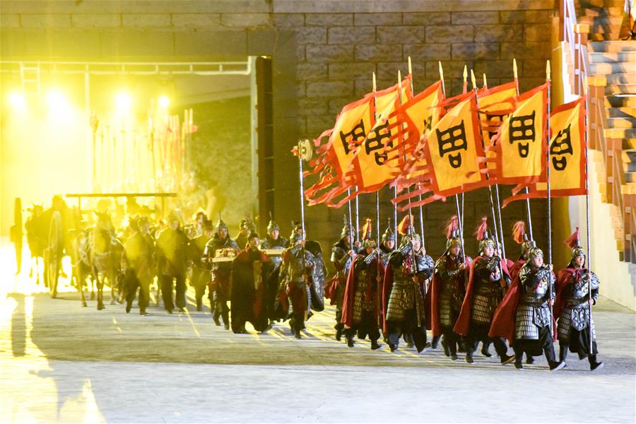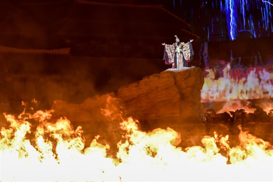 5月28日,演員在大型實景神話音樂劇《昆侖之約》中表演。5月28日,新疆文化旅游新名片——大型實景神話音樂劇《昆侖之約》在烏魯木齊南山景區(qū)上演。該劇融自然山水之美、藝術(shù)文化之光、現(xiàn)代科技之新于一體,為市民獻(xiàn)上一場視聽盛宴。新華社記者丁磊攝。