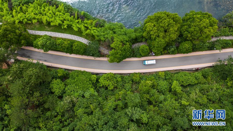 6月2日,車輛在阿哈湖國(guó)家濕地公園內(nèi)行駛(無(wú)人機(jī)照片)。初夏時(shí)節(jié),貴州省貴陽(yáng)市阿哈湖國(guó)家濕地公園草木蒼翠,風(fēng)景如畫,吸引人們前來(lái)休閑游玩。新華社記者陶亮攝。