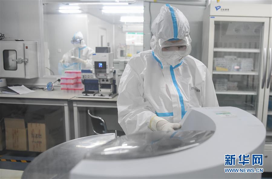 6月2日,在武漢金域醫(yī)學(xué)檢驗所里,檢測人員在工作。新華社記者程敏攝。