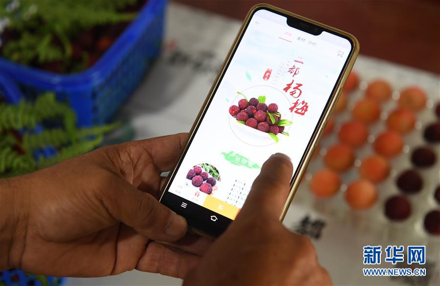 6月3日,在上虞區(qū)驛亭鎮(zhèn),舜利水晶楊梅專業(yè)合作社果農(nóng)在查看自己的電商平臺楊梅銷售頁面。近日,浙江紹興上虞區(qū)二都楊梅開采。楊梅是上虞區(qū)傳統(tǒng)特色農(nóng)產(chǎn)品,目前上虞區(qū)二都楊梅種植面積1651公頃,年產(chǎn)量1.1萬噸,2019年二都楊梅成功申報國家農(nóng)產(chǎn)品地理標(biāo)志認證。新華社記者翁忻旸攝。