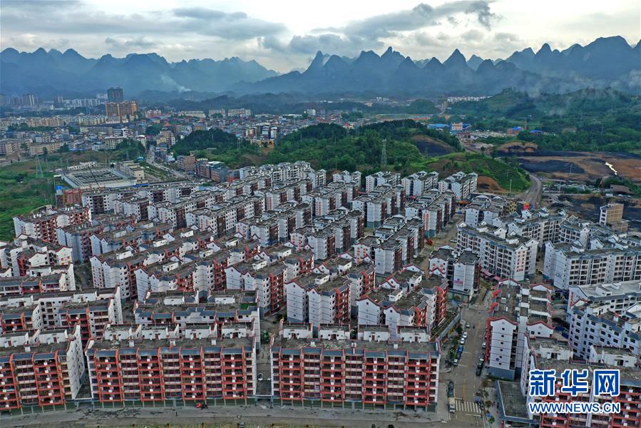 這是廣西環(huán)江毛南族自治縣毛南家園易地扶貧搬遷城北安置區(qū)(5月21日攝,無人機(jī)照片)。新華社記者周華攝。