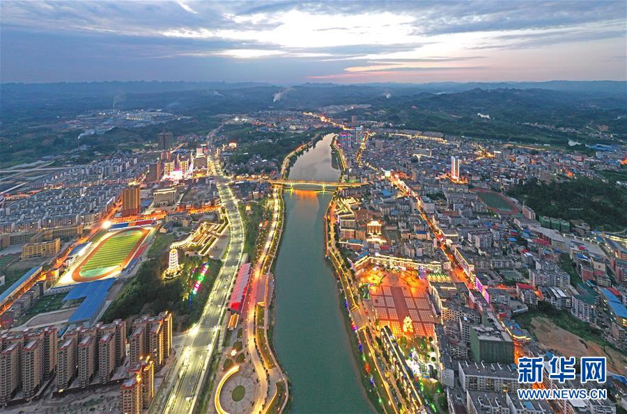 廣西環(huán)江毛南族自治縣縣城夜景(5月22日攝,無人機(jī)照片)。新華社記者周華攝。
