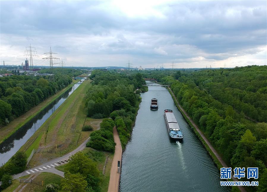 2019年5月10日,貨船航行在德國(guó)埃森埃姆舍河上。埃森位于德國(guó)傳統(tǒng)煤鐵工業(yè)區(qū)——魯爾區(qū)。魯爾區(qū)經(jīng)歷了產(chǎn)業(yè)轉(zhuǎn)型,已成為環(huán)境優(yōu)美、高科技聚集的創(chuàng)新經(jīng)濟(jì)區(qū)。6月5日是第47個(gè)聯(lián)合國(guó)世界環(huán)境日,今年的主題為“關(guān)愛自然刻不容緩”。新華社記者逯陽攝。