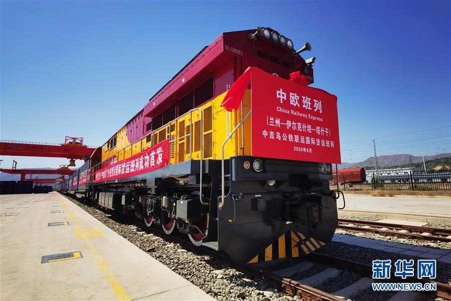 這是6月5日在甘肅蘭州國(guó)際陸港拍攝的準(zhǔn)備發(fā)車(chē)的“中吉烏”公鐵聯(lián)運(yùn)國(guó)際貨運(yùn)班列。新華社記者范培珅攝。
