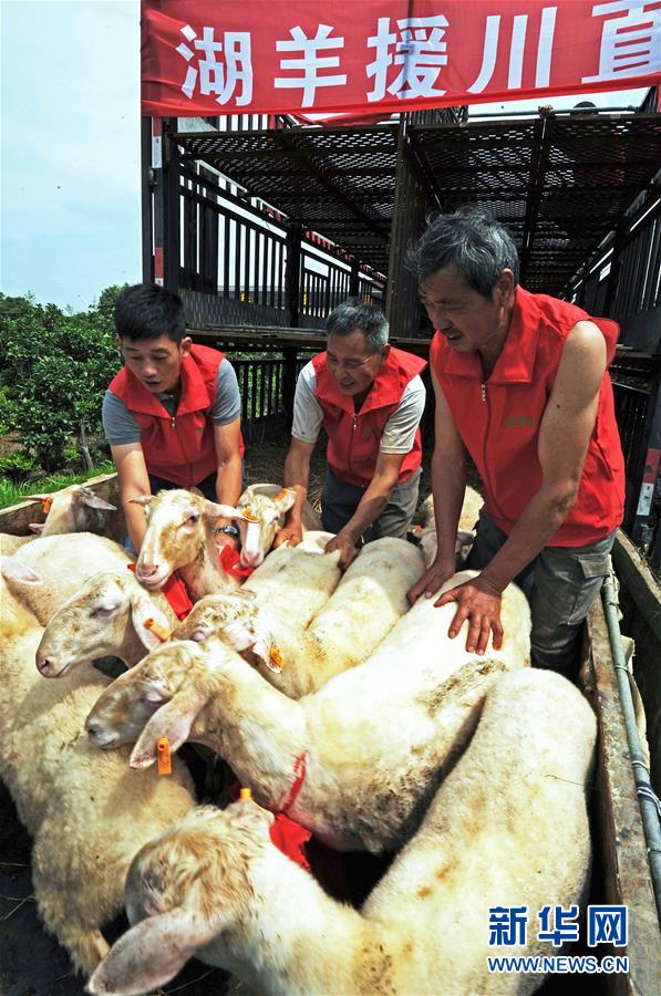 6月7日,南潯區(qū)一家湖羊養(yǎng)殖場(chǎng)的工人在裝運(yùn)湖羊。當(dāng)日,浙江省湖州市南潯區(qū)湖羊養(yǎng)殖場(chǎng)飼養(yǎng)的五千余頭湖羊啟程運(yùn)往該區(qū)對(duì)口幫扶的四川省廣安市廣安區(qū)。2018年以來(lái),南潯區(qū)依托湖羊養(yǎng)殖產(chǎn)業(yè)優(yōu)勢(shì),積極實(shí)施“湖羊入川”和“湖羊致富”工程,向?qū)趲头龅貐^(qū)提供優(yōu)質(zhì)湖羊種羊和湖羊養(yǎng)殖技術(shù)指導(dǎo)。截至目前,南潯區(qū)已向廣安等地提供1.2萬(wàn)余頭扶貧湖羊。新華社記者譚進(jìn)攝