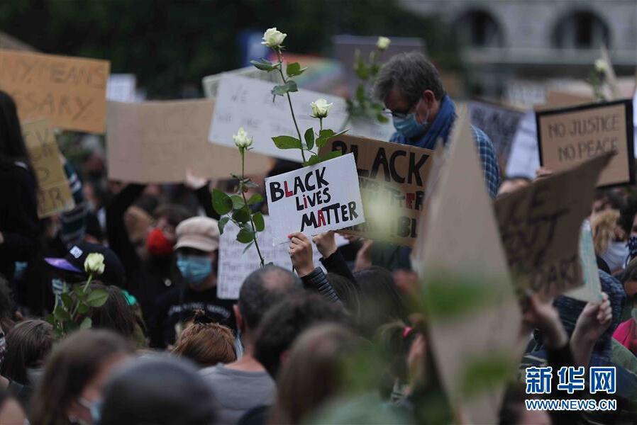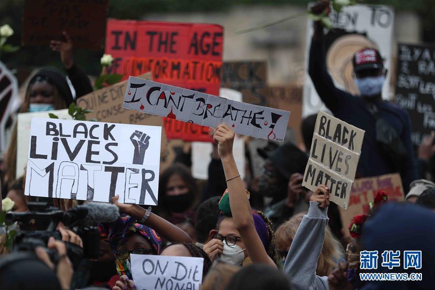 6月7日,民眾在比利時布魯塞爾市中心的司法宮附近參加示威活動。比利時民眾當日在布魯塞爾市中心的司法宮附近舉行示威活動,抗議美國明尼阿波利斯市警察暴力執(zhí)法致非裔男子喬治·弗洛伊德死亡。新華社記者鄭煥松攝