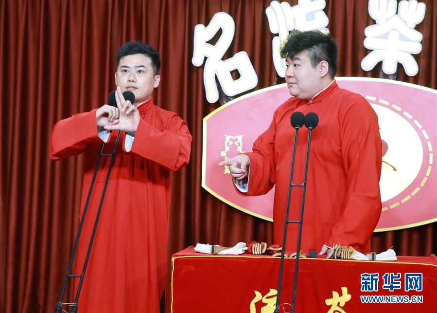 6月6日晚,天津名流茶館的相聲演員在付費(fèi)直播《名流名家“逗你玩”》演出中說相聲。隨著疫情防控形勢逐漸向好,天津的一些茶館紛紛轉(zhuǎn)戰(zhàn)“云端”說相聲,推出付費(fèi)直播演出,并邀請一些幸運(yùn)觀眾到現(xiàn)場觀看,在傳播津味相聲、培養(yǎng)年輕觀眾的同時,也為即將到來的線下演出“預(yù)熱”。新華社記者周潤健攝