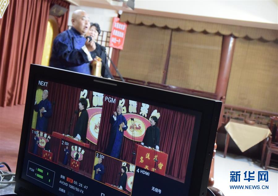 6月6日晚,天津名流茶館的相聲演員在付費(fèi)直播《名流名家“逗你玩”》演出中說(shuō)相聲。隨著疫情防控形勢(shì)逐漸向好,天津的一些茶館紛紛轉(zhuǎn)戰(zhàn)“云端”說(shuō)相聲,推出付費(fèi)直播演出,并邀請(qǐng)一些幸運(yùn)觀眾到現(xiàn)場(chǎng)觀看,在傳播津味相聲、培養(yǎng)年輕觀眾的同時(shí),也為即將到來(lái)的線(xiàn)下演出“預(yù)熱”。新華社記者周潤(rùn)健攝